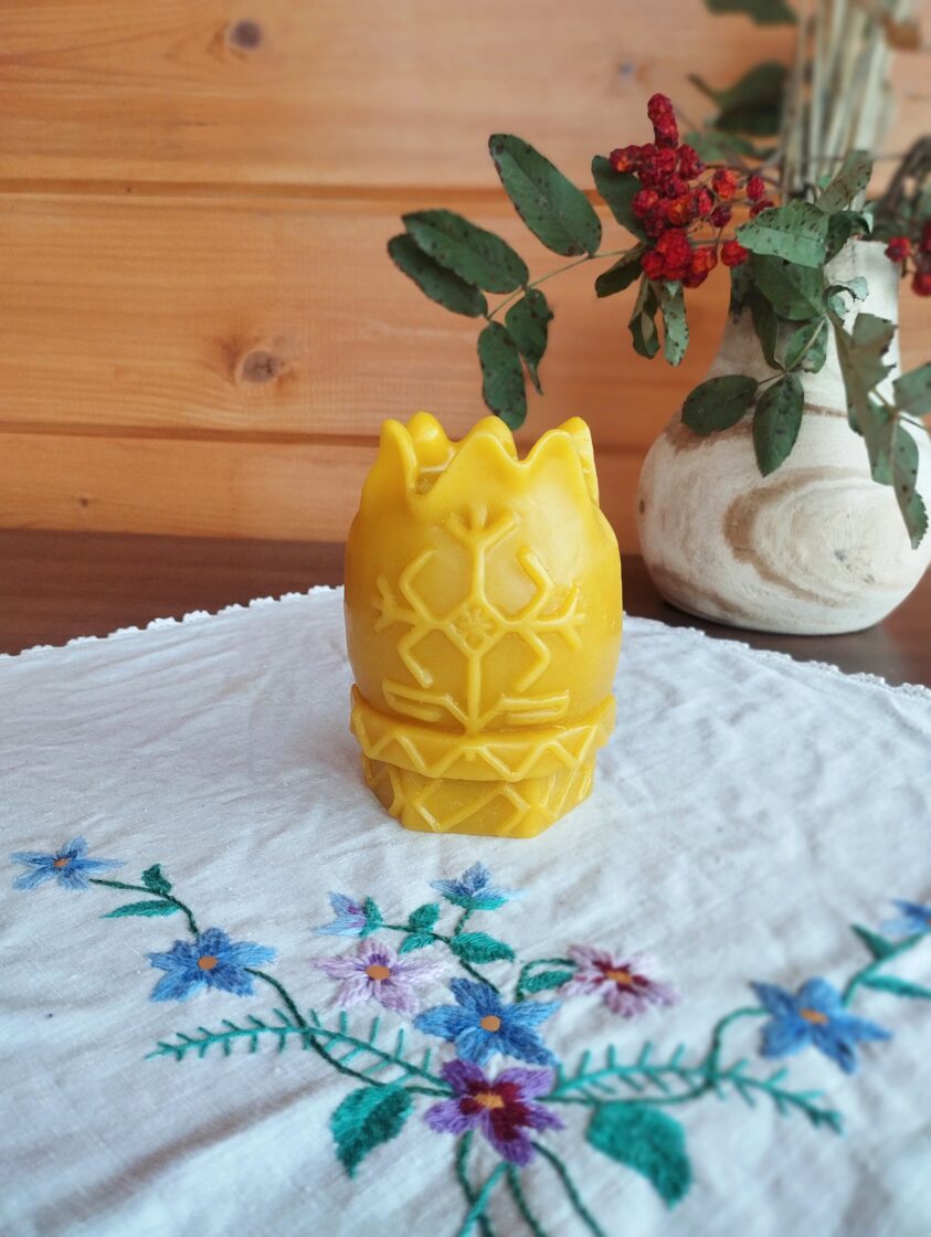 Paskutinį metų mėnesį pasitinkame su dar keliomis naujienomis iš mūsų dirbtuvėlių. Kadangi ne už kalnų didžiosios metų šventės, sugalvojome pasiūlyti vaškinių papuošimų Kalėdinėms eglutėms. Esame už natūralumą ir paprastumą, tad tikimės, kad mūsų gaminami žaisliukai džiugins ne vienus namus. Taip pat nepamiršta ir kūryba. Jau dabar krautuvėlėje, autorinių žvakių skyriuje puikuojasi nauja savito dizaino žvakė su senovės Baltų raštais-Pasaulio medis. Ši žvakė gali degti net iki 33 valandų.